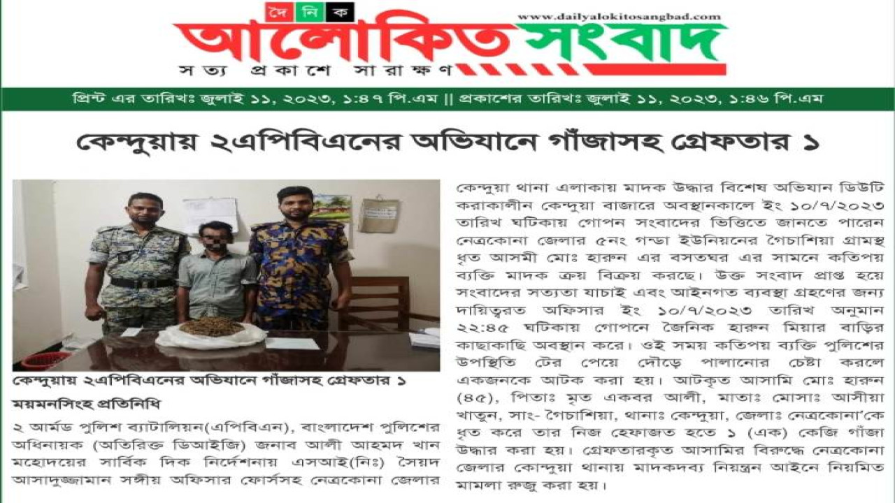 ২ এপিবিএন কর্তৃক মাদক ব্যবসায়ী আটক সংক্রান্তে পেপার কাটিং